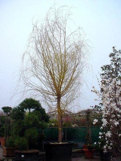 Salix babylonica ‘Aurea’ is een grote treurwilg met een gele kleur.