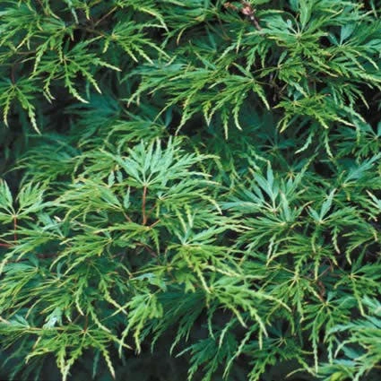 Acer palmatum ‘Seiryu’ heeft frisgroen blad in de zomer, dat zeer diep is ingesneden.
