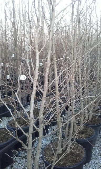 Deze Japanse Notenboom is gekweekt als meerstammige boom.