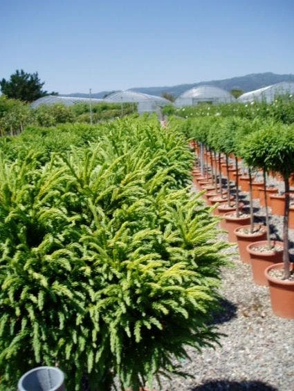 Cryptomeria japonica ‘Globosa Nana’ is een Sikkelden. Deze sierlijke plant is groenblijvend. Gekweekt op stam. Het is een vrij trage groeier.