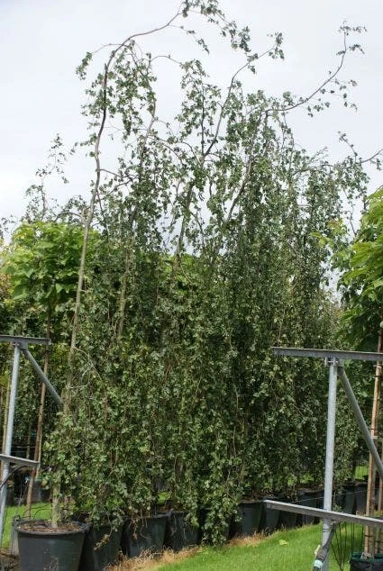 De Treurbeuk heeft takken die in de breedte groeien en jonge takken die hangen.