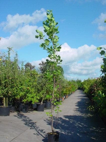 Liriodendron tulipfera ‘Fastigiata’ groeit zuilvormig.